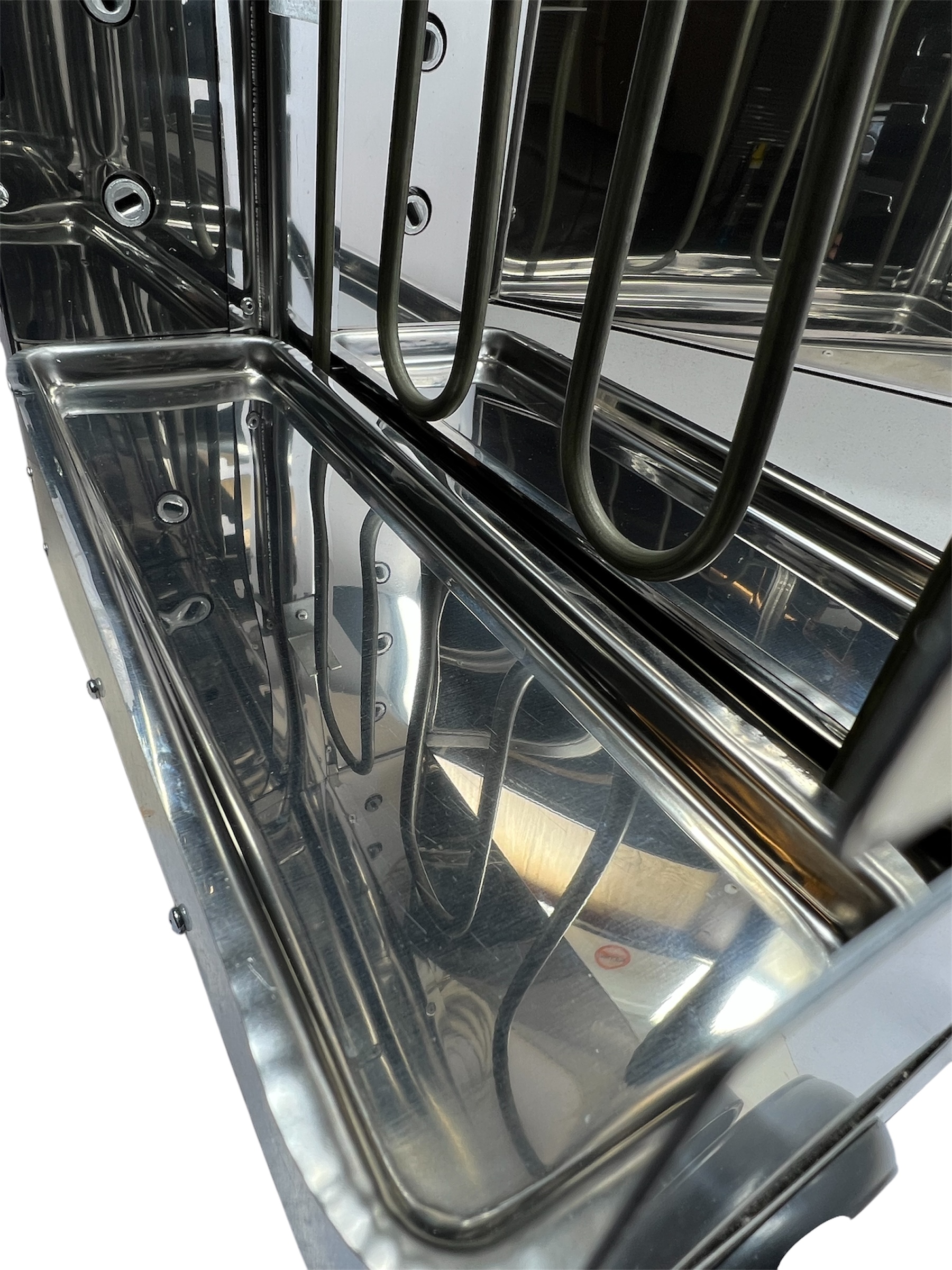 سیخدان(جای سیخ) 21 عدد سیخ (7 عدد سیخ کوبیده استیل، 14 عدد سیخ جوجه استیل) به همراه موتور سیخ گردان خودکار و سینی های عصاره گیر استیل