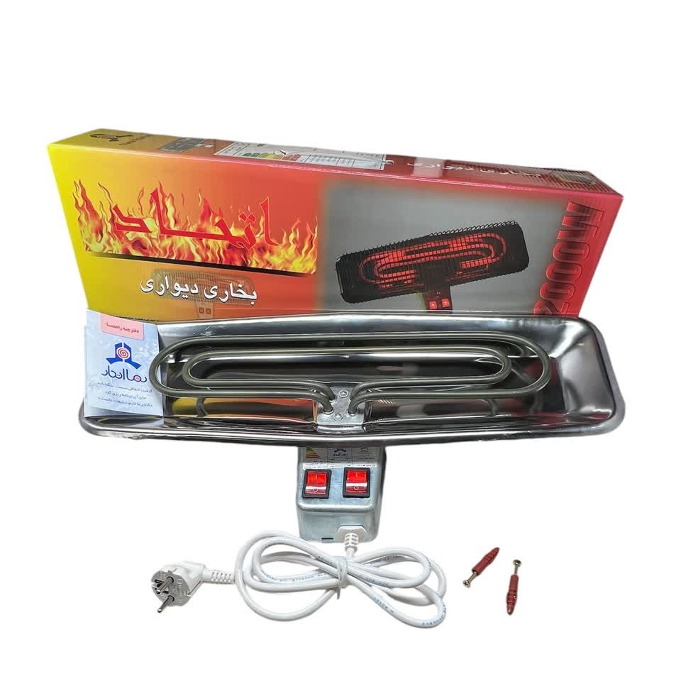 در بخاری دیواری دما اتحاد از دو المنت با توان 900 وات و 1100 وات، دوعدد کلید راکر چراغدار، صفحه بخاری مقاوم در برابر حرارت و انعکاس بهینه حرارت و کابل رابط پرتوان طراحی و استفاده شده. دلیل طراحی دو المنت با توان های متفاوت در این بخاری این است که برای کاربر این امکان فراهم شود حرارت بخاری را در فصول مختلف کنترل و در نهایت در مصرف برق صرفه جویی کند. هر کدام از کلید های راکر چراغدار متصل به یک المنت میباشد که این امکان را به کاربر می دهد تا المنت ها را به صورت تکی و یا دوتایی روشن و خاموش کند، ضمنا لامپ درون کلید نشانگر روشن بودن المنت میباشد.بخاری دیواری به دو صورت باگارد و بدون گارد دراین مجموعه تولید میشود.