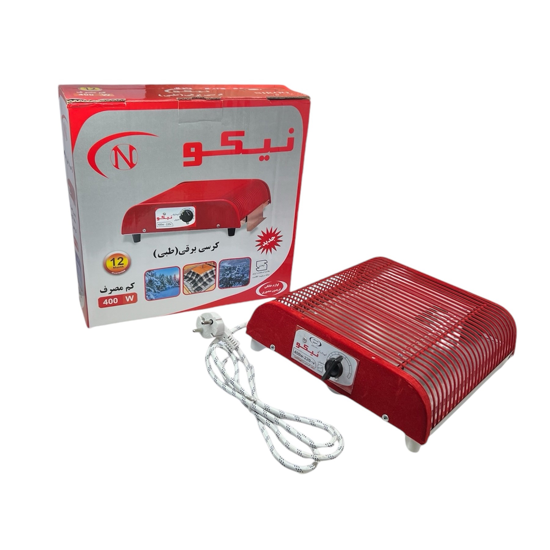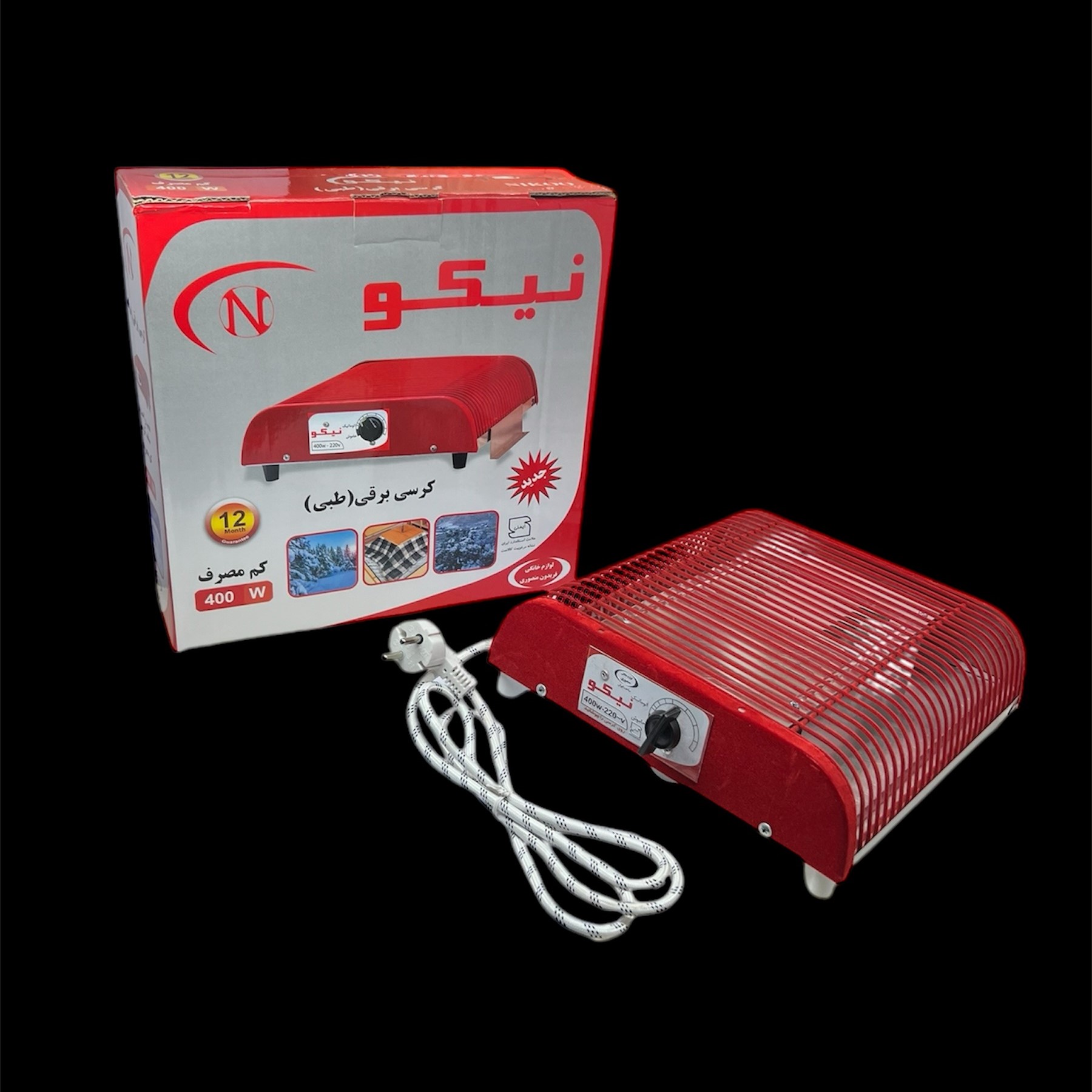 کرسی برقی نیکو مدل N500 به عنوان یک محصول کاربردی در فصل سرما مورد استفاده قرار می گیرد. بیشترین استفاده از کرسی برقی نیکو مدل N500 برای افرادی است که در منزل خود از کرسی استفاده می کنند. آن ها می توانند از کرسی برقی به جای کرسی های زغالی برای گرم کردن خود استفاده نمایند.این محصول دارای قطع کن خودکار نیست و به همین جهت باید در حین استفاده از آن تلاش بیشتری شود . چرا که در صورت واژگونی و خرابی خطر آتش سوزی در این محصول بیشتر است. برای اینکه کرسی برقی نیکو مدل N500 بتواند گرمای مناسب را تامین کند حداکثر توانی که برای آن در نظر گرفته شده است 400 وات می باشد که با توجه به ولوم تعبیه شده بر روی آن قابل تغییر است.جنس بدنه این محصول از فلز مخملی نسوز تشکیل شده است و همچنین المنت های موجود شیشه ای مقاوم در برابر حرارت هستند. در ضمن برای اینکه گرمای کافی را تامین نماید از دو المنت در آن استفاده شده است.