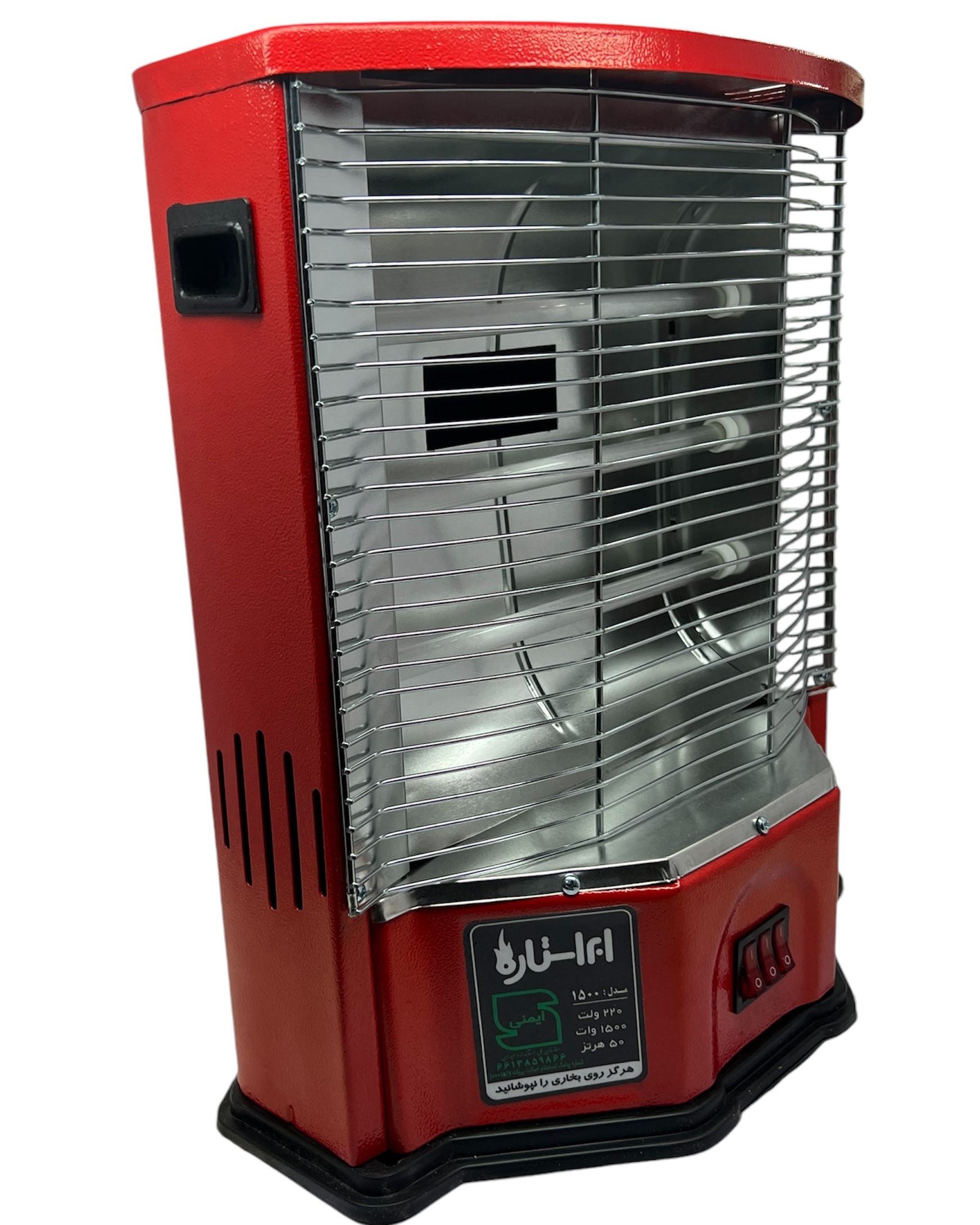 بخاری برقی ابر استاره فن دار مدل تویوست با حداکثر توان گرمایشی 1500 وات محصولی کاربردی برای فصل سرما ، مناسب گرم کردن روزهای سرد زمستان و پاییز است. این محصول کم مصرف بوده، دارای نشان استاندارد و رده انرژی A است و برای گرم کردن اتاقهای کوچک و فضاهای سربسته بهترین انتخاب است. بخاری برقی ابر استاره فن دارمدل توییست دارای 3 شعله می باشد. بخاری ابر استاره را میتوان روی میز یا زمین قرار داد. در این بخاری صفحهای به رنگ استیل نصب شده است که گرمای ایجاد شده را بهتر در محیط منعکس شود. فن، گرمای ایجاد شده در المنتها را به فواصل دورتری انتقال میدهد. 3 عدد کلید دو حالته نصب شده است که برای کنترل فن و المنتها استفاده میشوند. زیر بخاری، کلید قطع کن خودکار نصب شده است.